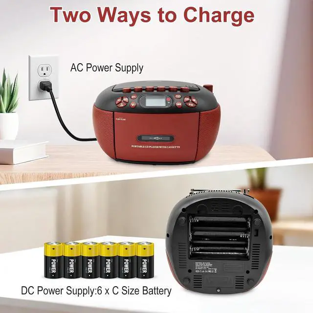 [AC/Battery Powered for On-The-Go Enjoyment] Our portable CD cassette player boombox can be powered by AC or batteries (not included), offering flexibility for both indoor and outdoor use. An ideal gift for parents, grandparents, kids, and friends. Comes with a detailed user manual and 12 months of warranty. Bring music to life with our CTDZLED boombox today!