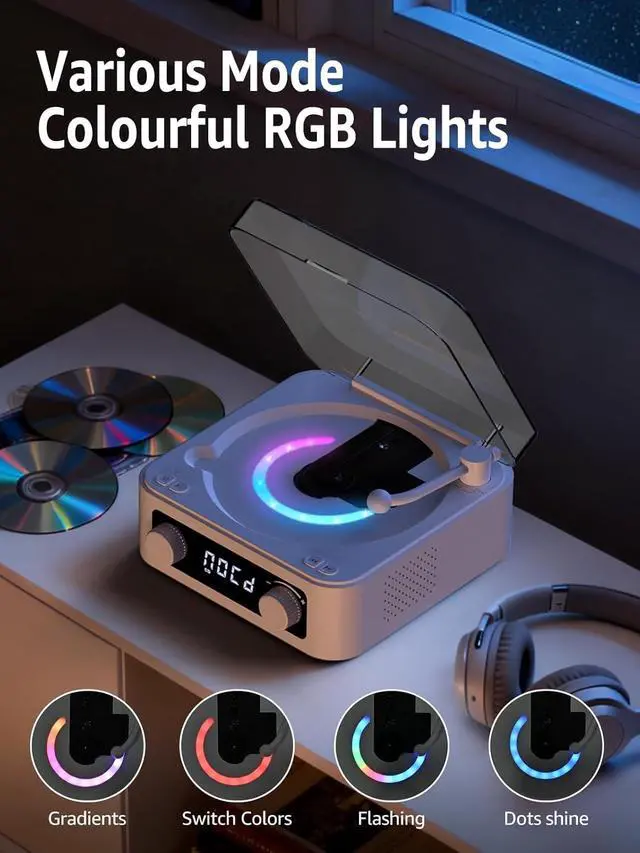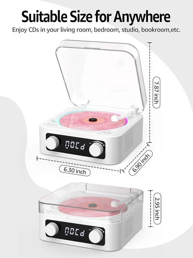LED Ambient Lighting Built in Hi-Fi Stereo Speakers Bluetooth CD Player Wide Compatiblity Rich Details Turntable Exterior Design Transparent Dust Cover Suitable Size for Anywhere
