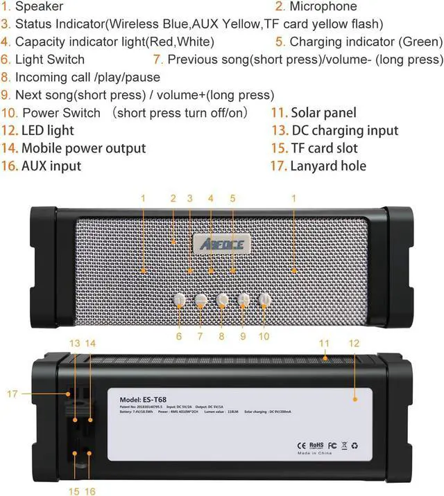 Solar Charging Experience: This solar bluetooth speaker high-performance monocrystalline silicon A-class solar panel,quickly absorb sunlights; Half hour sunlights,30 minutes music playtime (Speaker can also be charged through a wall outlet if there is no sun available); Supports playing music while solar charging.