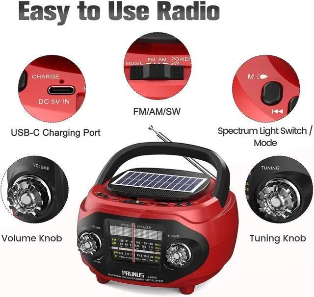 15W Speaker Immersive SoundFeel the music, don't just listen to it. This radio features a powerful 15W speaker and a unique bottom bass diaphragm for rich, clear stereo sound. Plus, This Radio AM FM features spectrum lighting, making it easy to create a party atmosphere anywhere. Whether you're at home, at a party, at the beach, or camping, it delivers an unprecedented listening experience.