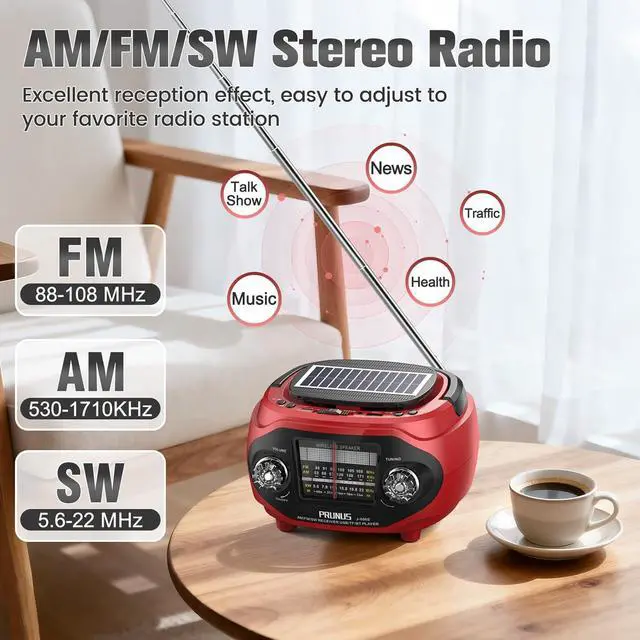 Excellent ReceptionThis am fm radio portable covers FM (88-108MHz), AM (530-1710kHz), and SW (5.6-22MHz). Built with a powerful DSP chip and a 21-inch long copper telescopic antenna, this transistor radio delivers clearer signals and more stable reception. Whether you're in the city or the countryside, you can easily catch your favorite talk shows, BBC News, ball games, and music.