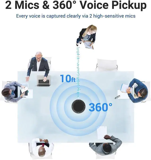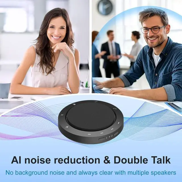 360° Voice Pickup & AI Noise Reduction: The NewPie 31 conference speaker features 2 high-sensitivity microphones with AI noise reduction technology, capturing voices clearly from every angle within a 10ft range. Ideal for home offices, online learning, or conference rooms.