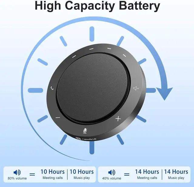 Long Battery Life for All-Day Meetings: This portable conference room speaker provides up to 10 hours of USB use or 14 hours of Bluetooth talk time on a single charge, keeping your meetings uninterrupted throughout the day.