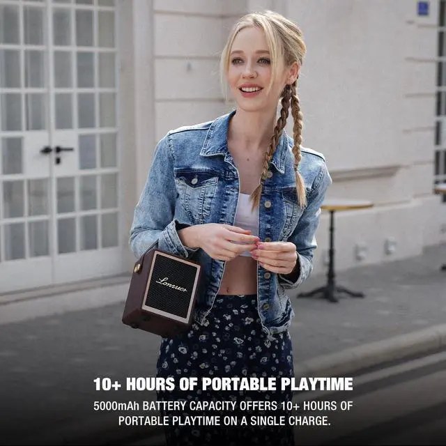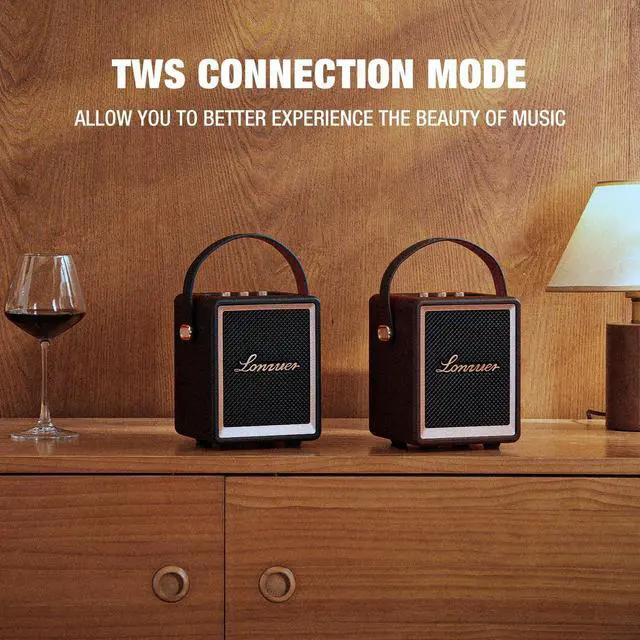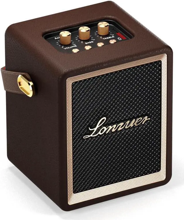 Lightweight Vintage Retro Portable Design The small portable outdoor speaker is a combination of modern technology and retro classic aesthetics. It was made of wood frame with genuine leather covering the whole speaker body and a front steel metal grill, which make it not only a bluetooth speaker but also a nice home decor for any scenarios. When you need to go to an outdoor party, camping trip, or business trip, you can carry it out very conveniently and comfortably by the slim leather strap handle, which will definitely make you very eyes catching as well