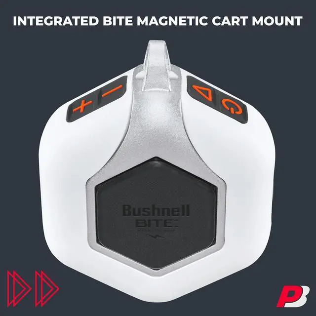 [EFFORTLESS MOUNTING WITH BITE MAGNETIC CART MOUNT] - The Wingman Mini speaker features Bushnell's innovative BITE magnetic mount, allowing you to have a golf cart speaker that can effortlessly attach to the cart bar.
