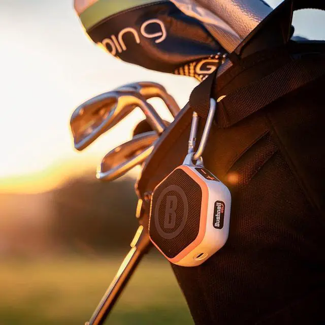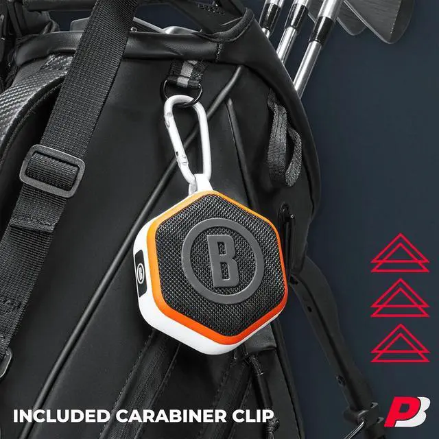 [CONVENIENT ATTACHMENT WITH CARABINER CLIP] - Keep your Wingman Mini golf Bluetooth speaker within reach by using the included carabiner clip to attach it to your golf bag. This ensures that your device is easily accessible whenever you need your Bushnell golf speaker.