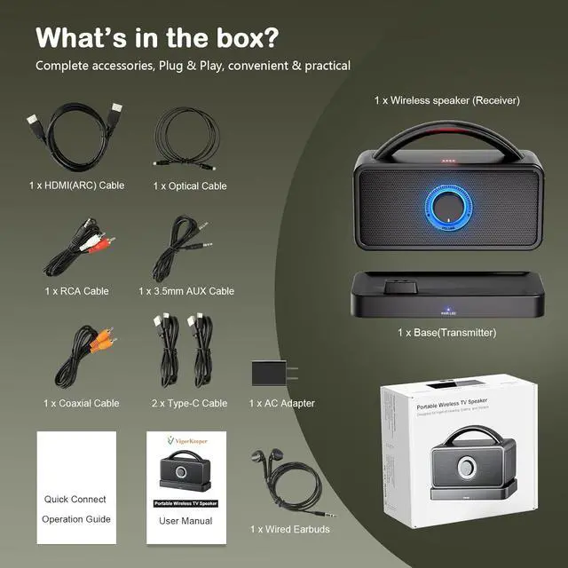 Amplifies TV Audio: VigorKeeper wireless TV speaker amplifies TV audio to help seniors or hard-of-hearing users hear dialogue clearlyno more leaning close to the screen. Its boosted sound cuts through background noise to bring voices closer, and it also works as a direct replacement for broken TV built-in speakers, saving you from buying a new TV.