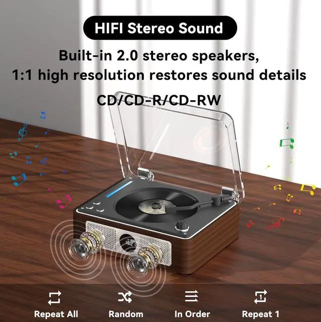 With remote control and HIFI speakers: Dual HIFI stereo portable CD player with speakers, surrounds the entire living room, and the volume can be adjusted as needed. It is also equipped with a remote control that supports control within 10M. There are a variety of buttons on the remote control to help you control music/volume. Even if you are not next to the CD player, you can enjoy music easily and comfortably while sitting on the sofa. Great for language learners and audiobook lovers