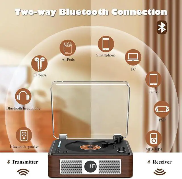 CD Player with Bluetooth Input and Output: The CD player portable is Bluetooth transmitter and receiver ,it can not only listen to music in CD/USB/Optical,but also connect Bluetooth headsets/speakers. And as bluetooth receiver,it can be connected to your mobile phone, computer, and tablet as well.