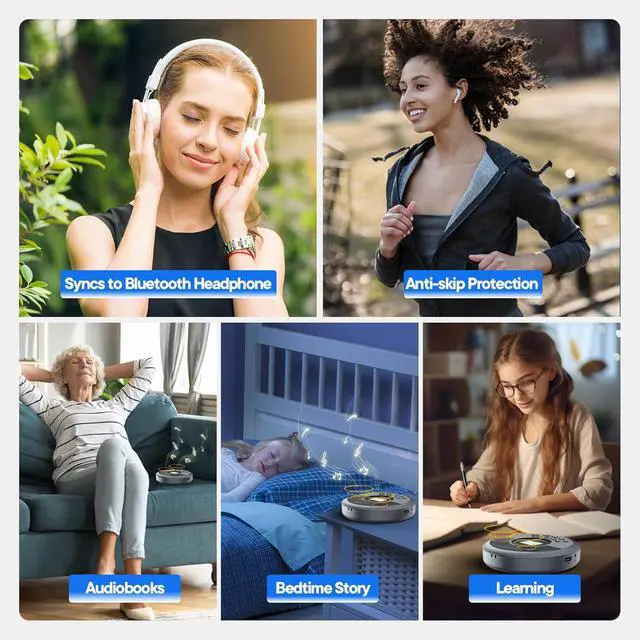Multi functions personal cd playerThis CD players Bluetooth supported discs format: CD, MP3, CD-R, CD-RW.The discman CD player with headphones is compact, lightweight, and easy to be carried or stored. You can enjoy your favorite CDs music perfectly at home; in the car; or on the travel, no matter where you go.