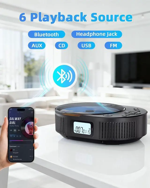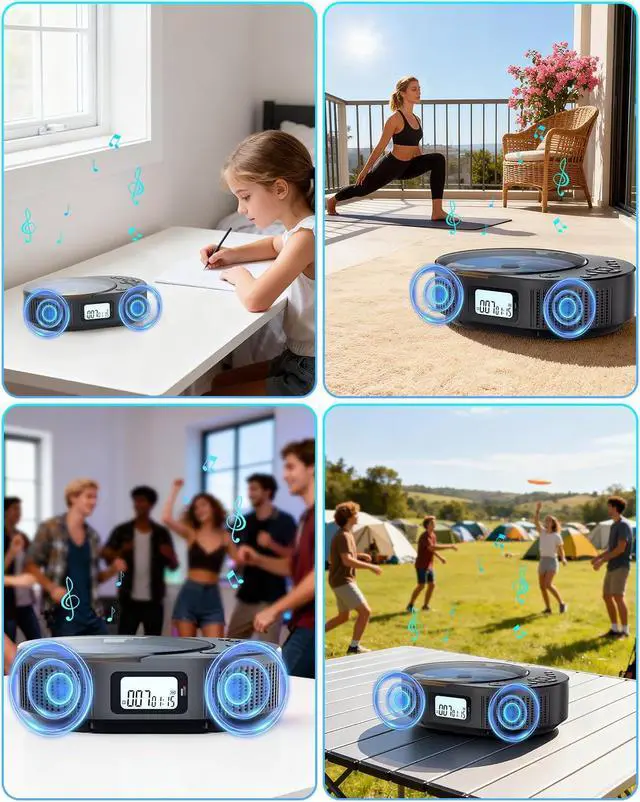 Multifunctional CD PlayerOur CD player portable has a built-in FM radio, supports FM radio range: 76MHz-108MHz, and can search and store your favorite radio stations. It also supports CD, CDR, HDCD, MP3, WMA formats and USB flash drives (FAT32 format, maximum 32GB). It provides CD mode, Bluetooth mode, FM mode, USB mode, AUX-in mode, 5 different music playback modes and 5 sound effects. Whether it is the majesty of classical music or the dynamics of pop music, it can bring an immersive listening feast.