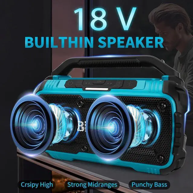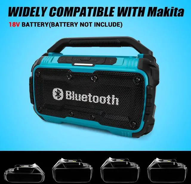 Seamless Compatibility: Power up with ease. This Jobsite Speaker Compatible with Makita 18V Li-ion battery. It harmoniously pairs with all Compatible with Makita lithium-ion battery models, (including models BL1860, BL1860B, BL1850, BL1850B, BL1840, BL1840B, BL1830, BL1830B, BL1815, BL1825, BL1835, BL19405, BL19404, etc). and more. (Tool Only, Battery Not Included)