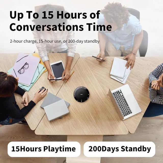 360 degree omni-directional microphone captures voices clearly from all angles.