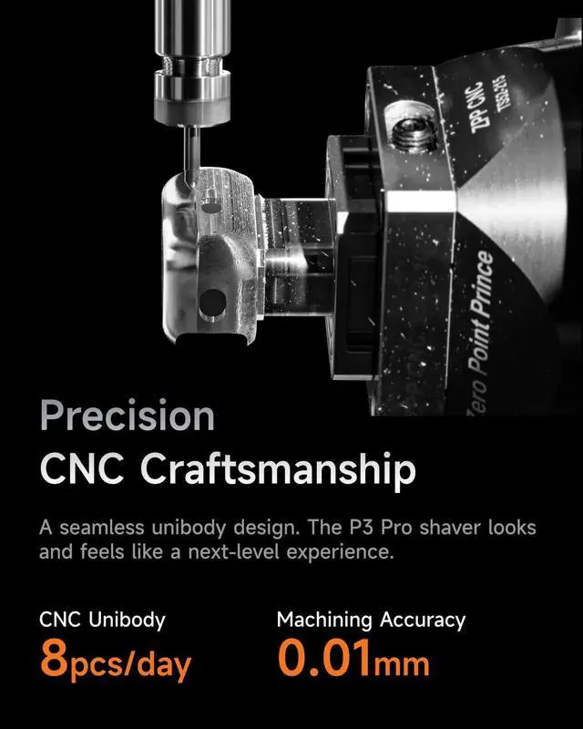 1CNC2Microscopic Precision3Visible Power4Process1Arcblade2Micro-Thin Foil3Open Comb Design4Low-nickel Foil1Designed for Excellence2Intelligent PID Control3IPX7 Waterproof4Long Battery Life5Travel Mode Laifen P3 Pro Electric Shaver