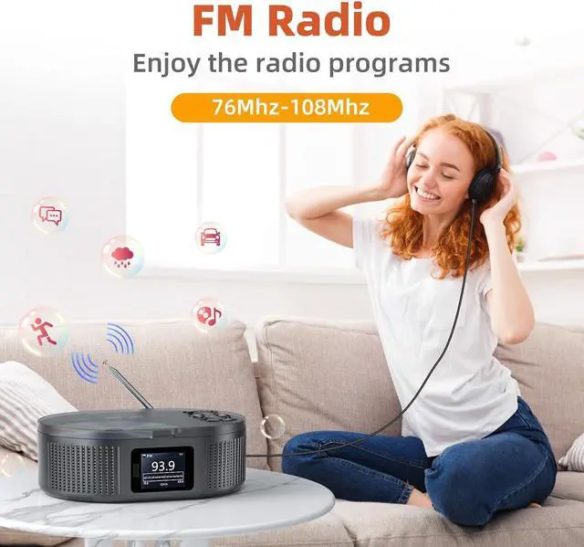 FM Radio CD PlayerThis boombox cd player offer 5 different modes (CD/Bluetooth/USB/FM/AUX). FM radio frequency is 76MHz -108MHz. You can listen to music, news, etc. from various channels whether you are in the car or at home.