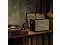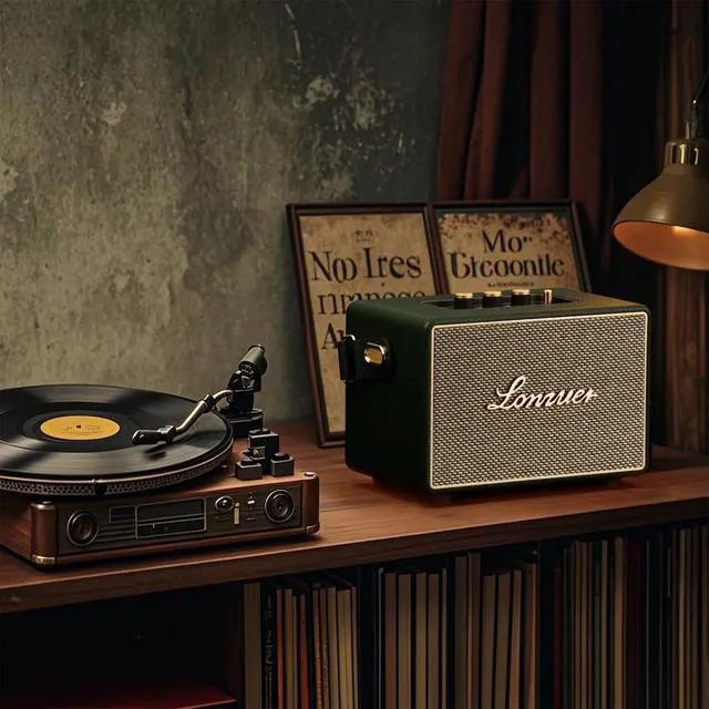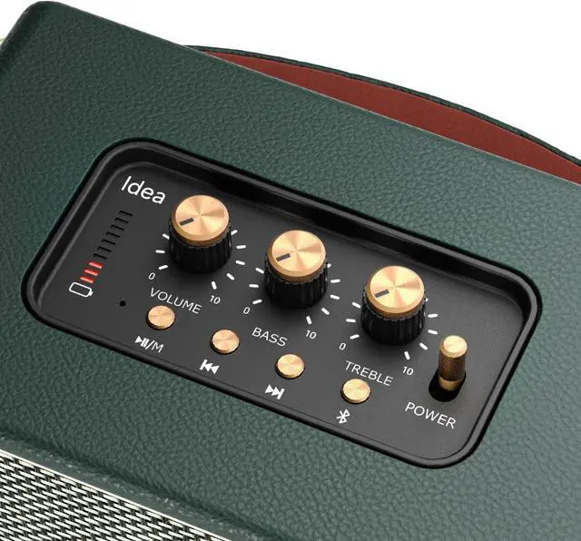 Retro-style desktop combo speaker boasts a handmade wooden case and Leather wrap.