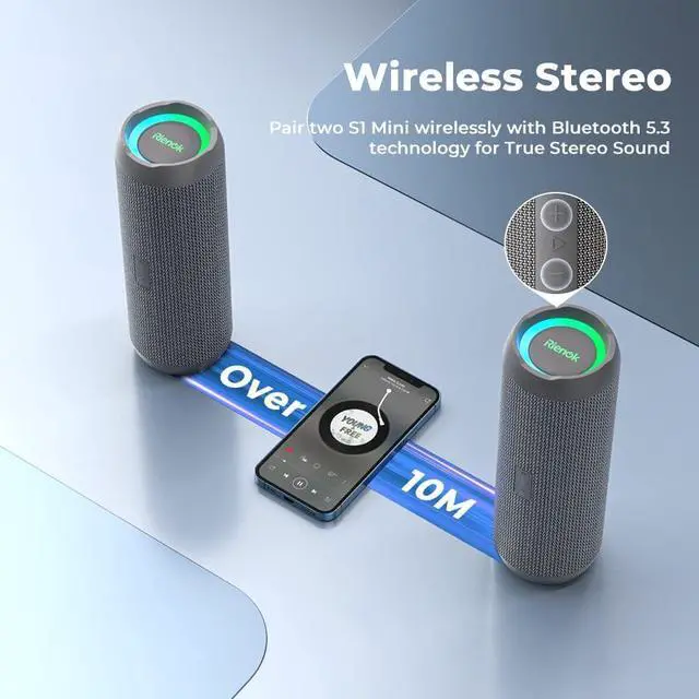 2 Pack Portable Speaker True Wireless Stereo Bluetooth 5.3: Connect 2 speakers together, they would play together at the same time! Memory mode on both speaker for next use. One Bluetooth speaker also plays great! Bluetooth 5.3 provides greater wireless range. The 5.3 Bluetooth chip easily reads music play list,and connect any devices.