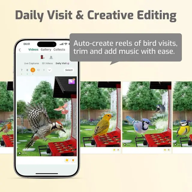 Get Instant Bird Alerts - Youll never miss a moment of the action. The Coolfly app sends a real-time notification to your phone the second a bird lands on your feeder. Every visit is automatically recorded and saved to your secure cloud, creating a personal video log of all your feathered friends that you can watch and share anytime