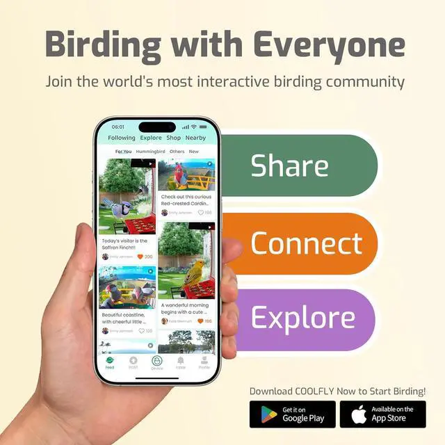 Join the Coolfly Community - Connect with a global network of fellow bird enthusiasts right in the Coolfly app! Browse a vibrant feed of beautiful bird videos from around the world, share your own amazing captures, and exchange tips and stories. Like, comment, and follow other users to make your bird watching hobby a shared social adventure