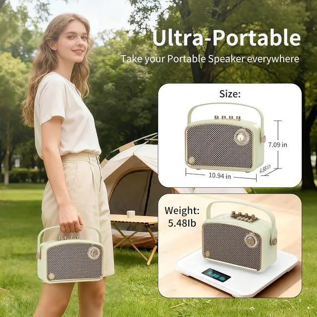 [Premium Design & Effortless Portability] Built to last, this karaoke machine features durable metal alloy control panels and a comfortable rotating handle, combining style with practicality. With its compact size , Solid and Elegant Design(5.48 lbs), Its ergonomic design includes an adjustable handle, enabling effortless portability so you can carry it anywhere with ease, whether you're teaching, coaching, guiding tours, or hosting events.