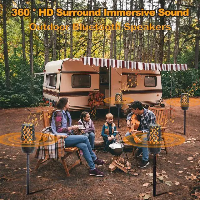 2 IN 1 Bluetooth Speakers with Light: The Outdoor Bluetooth speakers works as a portable bluetooth speakers, an LED Flame table lamp and night light. It can play high-definition music while the realistic dancing flashing torch creates a lively campfire atmosphere, and the LED night light speaker creates a romantic atmosphere to help your family fall asleep quickly. Just enjoy this moment of relaxation.