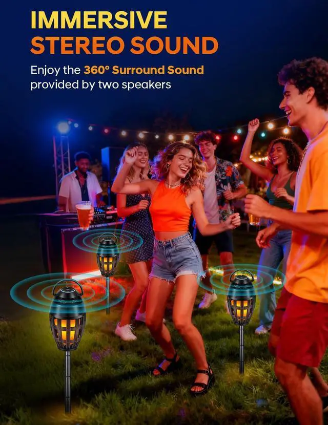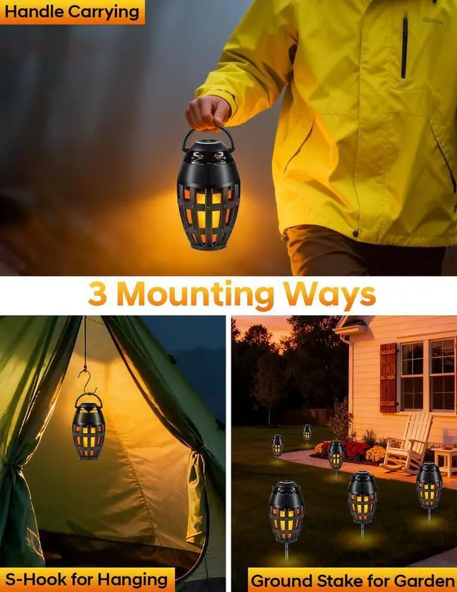 Everything included: 2 x flickering flame Bluetooth speakers, 2 x Type - C charging cable, 2 x S - hook, 2 x ground stake, and quick - start guide. If you have any problems with our mutifunctional wireless speakers, please do not hesitate to contact us. We will provide 24 - hour service