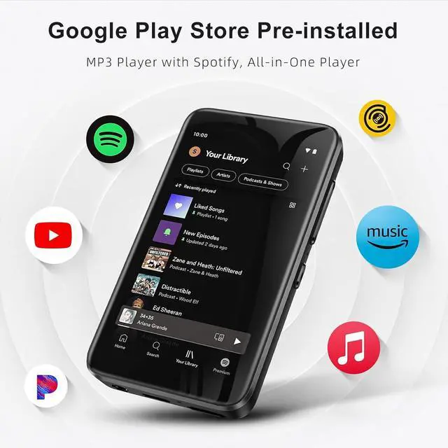 3.4-inch Touch Screen & Dual-band WiFiThe portable music player is equipped with a 3.4-inch display (480×854) and supports 2.4GHz/5GHz WiFi. Easily browse YouTube, listen to Spotify music, or download apps through the Google Play Store.