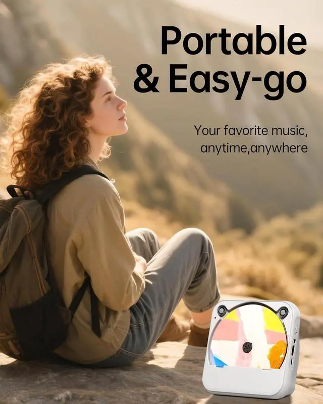 Desktop Creative DesignDesktop CD Player with a 75-degree angle desktop design, no assembly required. Placed on the desktop, it not only saves space but can also be used as a standing speaker to play music. Equipped with a remote control, convenient for you to control this CD player from your living room or bedroom, etc. The appearance is cute and mini, making it a powerful tool for your child's learning.