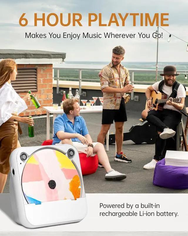 Rechargeable BatteryBuilt-in 2000mAh battery, no need to constantly plug in the charging cable to the CD player while playing music. The portable CD player includes a Type-C charging cable for charging. You can charge it using the Type-C cable; the desktop CD player takes approximately 3 hours to charge and can be used for about 6 hours.