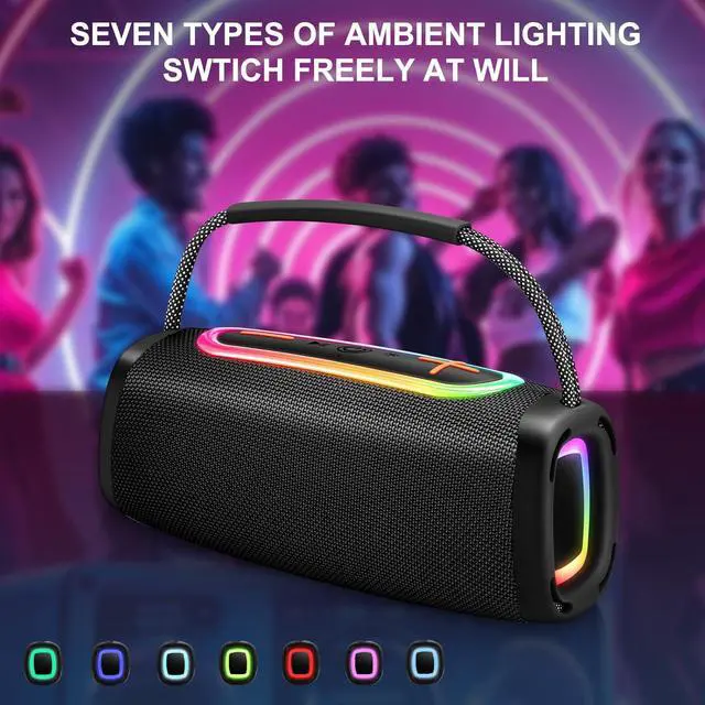 Beat-Dynamic Light Show: LED light portable speaker bluetooth offering multiple RGB lighting dynamics modes, it is easy for you to customize the lighting effects to meet your preferences with the push of Light button. Add a vibrant touch to your music listening sessions, creating a dynamic and visually appealing atmosphere for party. Make any gathering more memorable with these visually stunning light effects that will elevate the atmosphere.