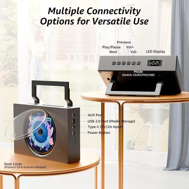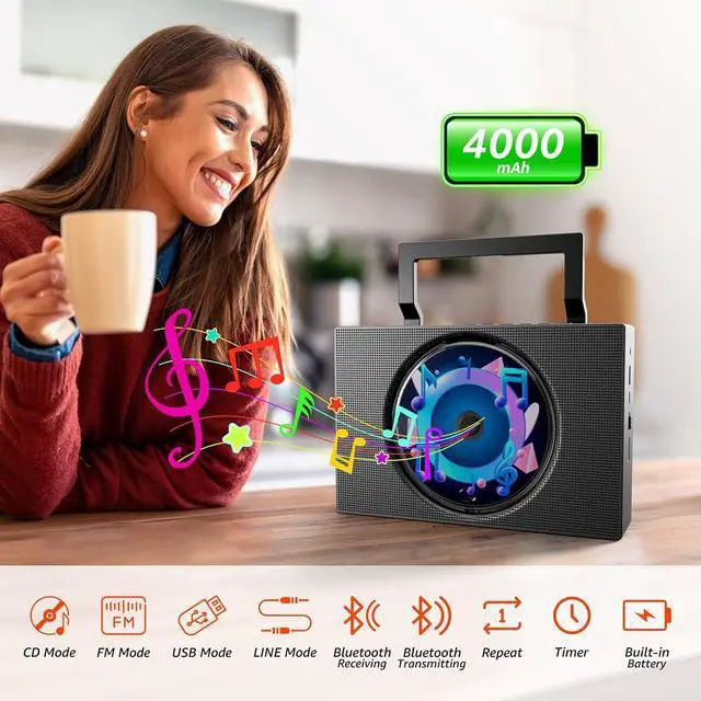 BUILT-IN FM RADIO - Features a full-band FM radio (76.0-108.0MHz) so you can tune into your favorite radio stations. Enjoy talk shows, news, music, and sports broadcasts with clear reception. Great for keeping entertained when you're not playing CDs or streaming.