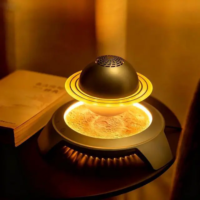 Futuristic Levitating DesignMAGECMOON Saturn Speaker features magnetic levitation technology, creating a 1.8-2cm floating effect with 250g load capacity. The zero-gravity visual effect and orbit-like rotation make it a dynamic centerpiece for modern spaces. It creates a mesmerizing centerpiece for living rooms, offices, or bedrooms.