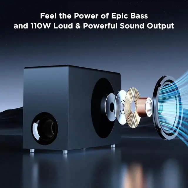 Excellent Sound Quality: Our soundbar delivers crystal-clear vocals, rich bass, and immersive surround soundall in a sleek, space-saving design. With advanced DSP technology and a dedicated subwoofer, providing you with beautiful and rich sound, expanding your listening experience, every movie and song comes to life with theater-quality audio. Whether you're watching action films or streaming music, you'll hear every detail with stunning clarity