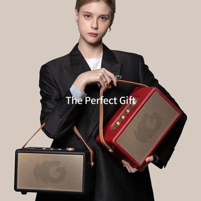 VINTAGE DESIGN: Classic retro-styled portable speaker featuring premium aesthetics with a stylish leather carrying strap for easy transport