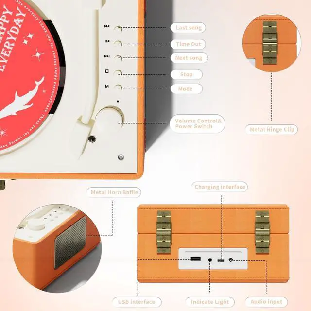 (Multifunctional Music Player)Play music via CD; Bluetooth; USB; Supports Bluetooth transmission and 3.5mm AUX audio output