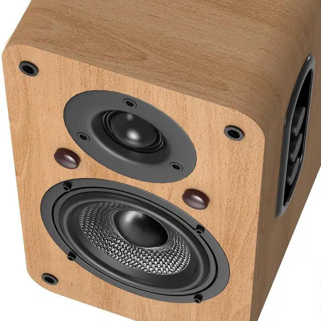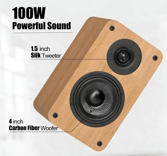 Transient Natural Bass SpeakerOur stereo speakers feature 4-inch bass unit optimizes airflow, effectively connecting the wood fiber sound pot with the solid wood paneling on the outside of the cabinet.The opening of the bass unit inside the cabinet is larger than the standard design, making the sound effect more natural and the audio response smoother and fuller.