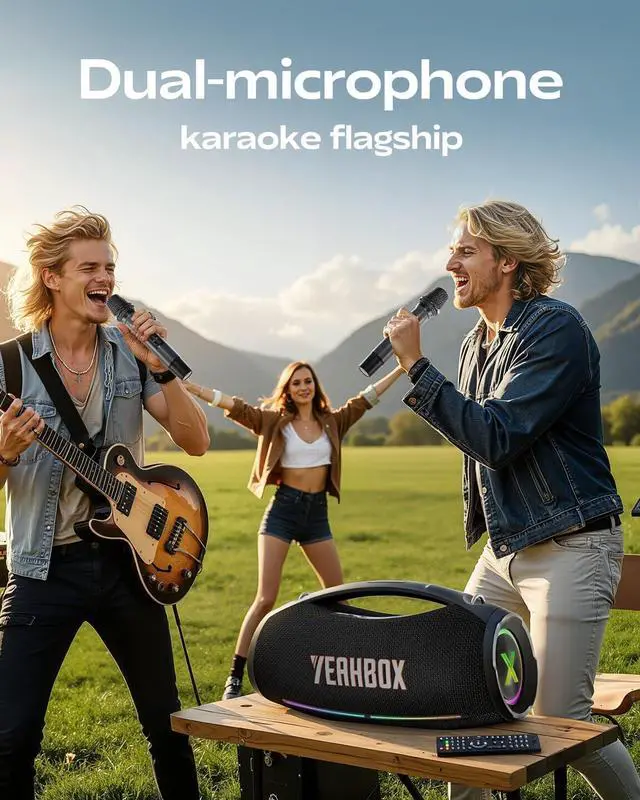 Dual Wireless Microphones with DSP Vocal Processing Comes with two high-fidelity wireless microphones featuring independent DSP tuning for crystal-clear vocals and dynamic real-time sound optimization. Perfect for karaoke, parties, and family fun.