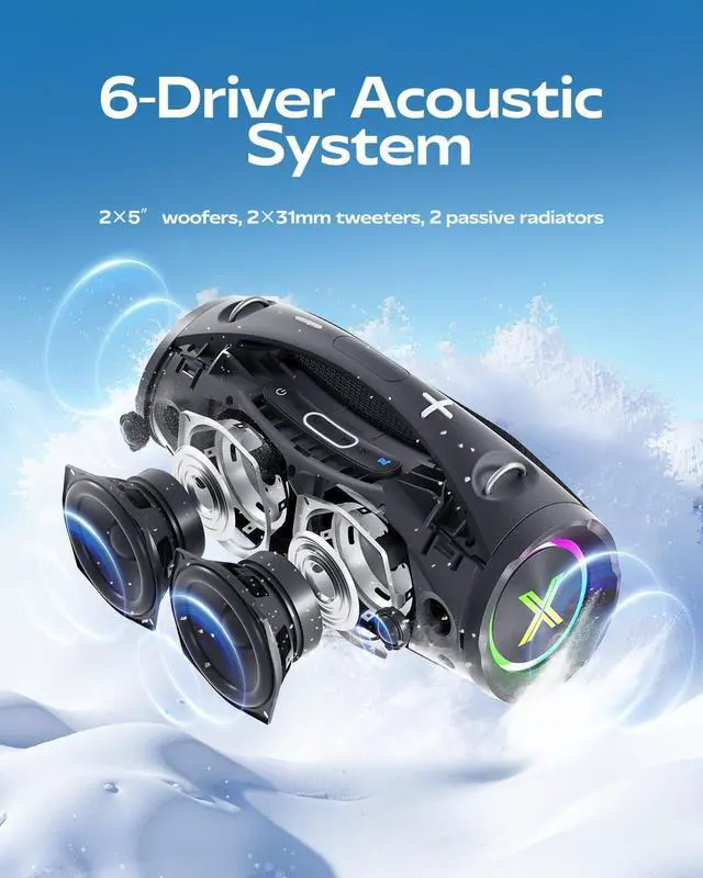 120W RMS Power & 6-Driver HiFi Sound System Features dual 5-inch woofers, dual 31mm tweeters, and dual passive radiators to deliver 120W RMS (200W peak) with punchy bass and crisp treble.