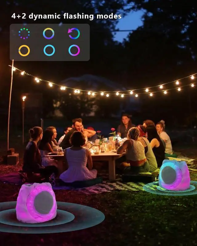 DAZZLING LIGHT SHOW 6 MODE: Use the light button to switch the light display position for Horn ring mouth, Multi color variation, 4 modes for for Horn ring mouth, 2 modes for inner housing.Elevate your parties to the next level with our speaker's stunning light show feature.