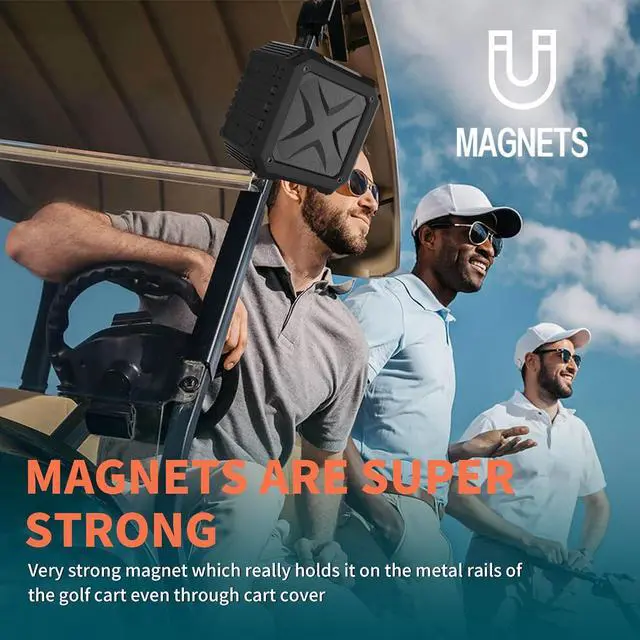 [Ultimate Convenience with a Magnetic Bluetooth Speaker]: This portable speaker comes complete with a built-in super strong magnet and a detachable lanyard, making it easy to carry and magnetically attach to golf carts, bikes, scooters, basketball posts, or clip to golf bags, backpacks, strollers, and more. It's the perfect choice for golf cart speakers and outdoor Bluetooth speakers, ensuring you can enjoy your music wherever you go.