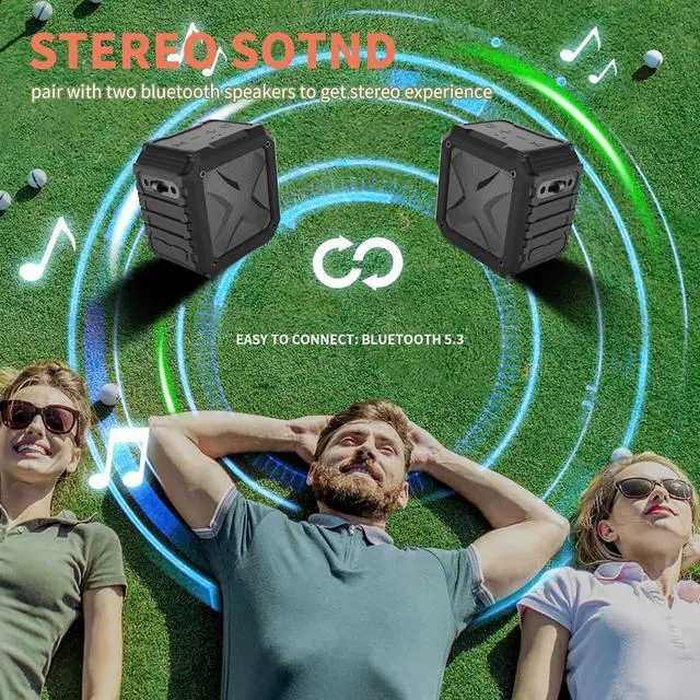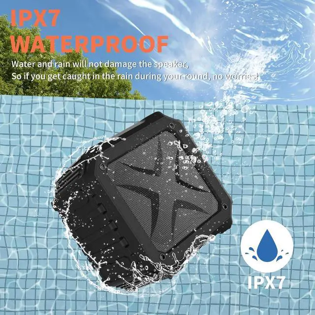 [Waterproof and Shockproof for Any Adventure]: Built to withstand any adventure, our waterproof speaker is designed with military-grade quality, perfect golf cart accessories. With its tough rubberized coating, IPX7 waterproofing, and shockproof design, it's perfect for both indoor and outdoor use. Relax and enjoy your ultimate entertainment without worry during your outdoor adventures.