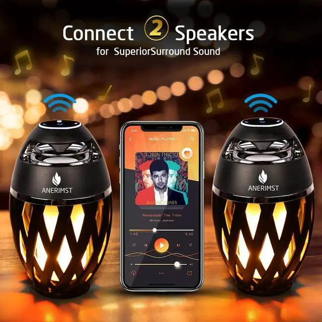 OUTDOOR BLUETOOTH SPEAKERS: The waterproof wireless speakers are more than outdoor speakers but patio torch lights, camping lanterns, night lights, and ambient lighting! Upgraded 96 LED torches flicker gorgeous dancing flames. Upgraded 2 lighting modes design: night light and flashing flame light mode.