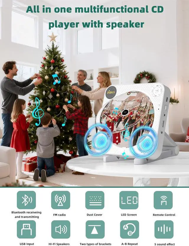 Compact and Easy to UseOur portable CD player is small with compact design and simple control buttons. No complicated setup required, you can bring your music to any room in your home or garden to enjoy.