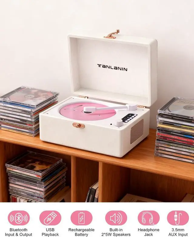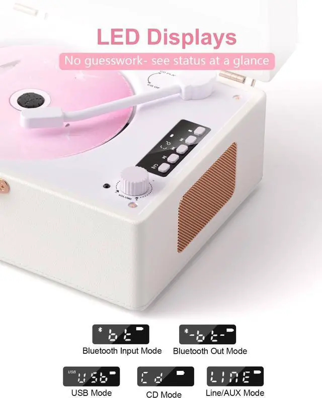 RETRO-REFINED LOOK- This CD player is adorned in pristine white PU lychee pattern leather, perfectly complemented by rose gold hardware. Relax after a busy day listening to your favorite music and add a touch of sophistication to your listening space