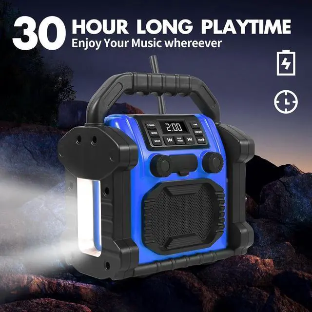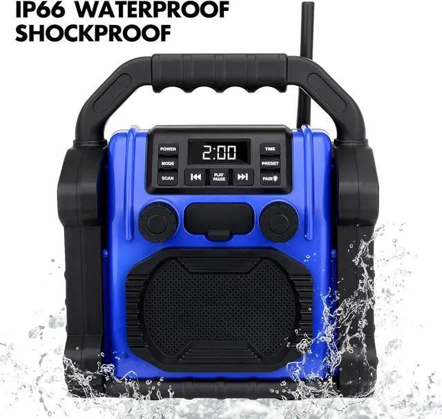 Portable Handle:Single hand take it to any place you want, it is with construtive fasten manual handle design, light weight and portable to take it along with you.Music and wonderful happiness with beside of you, no matter you are working at contrustion site or travelling.
