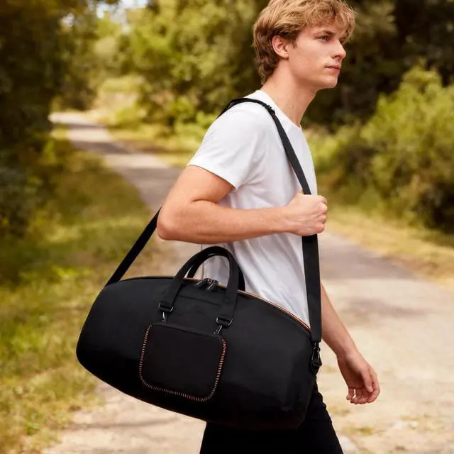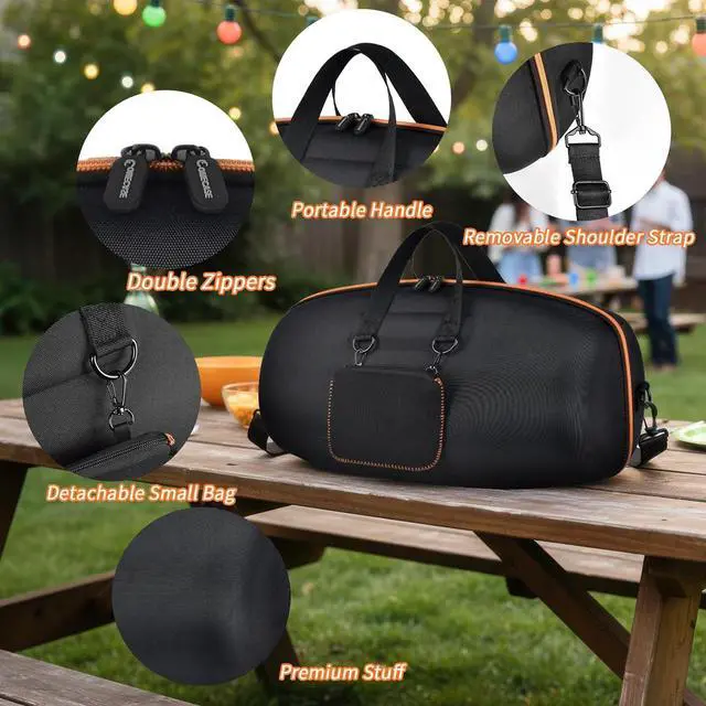 Organized accessories & easy carrying for portable boombox 4 - Includes a detachable, adjustable shoulder strap and a separate small pouch. Wear it by hand, over the shoulder or cross-body to free your hands while travelling. Pouch neatly stores cables, chargers and small adapters away from the speaker, preventing scuffs and keeping your Boombox 4 kit tidy on the go. Please note: case only, speaker not included