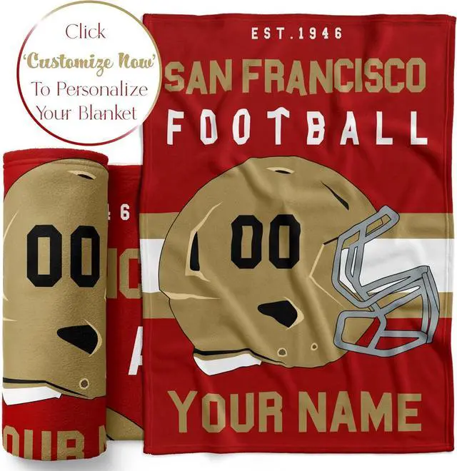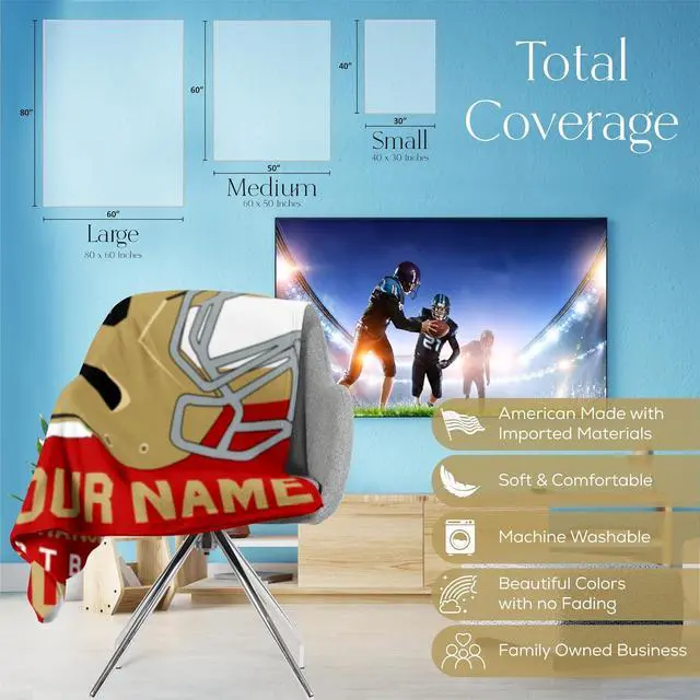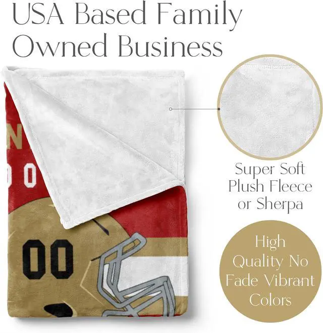Customize this football blanket with a name and helmet number to create a unique, personalized gift for any football fan or player in your life.