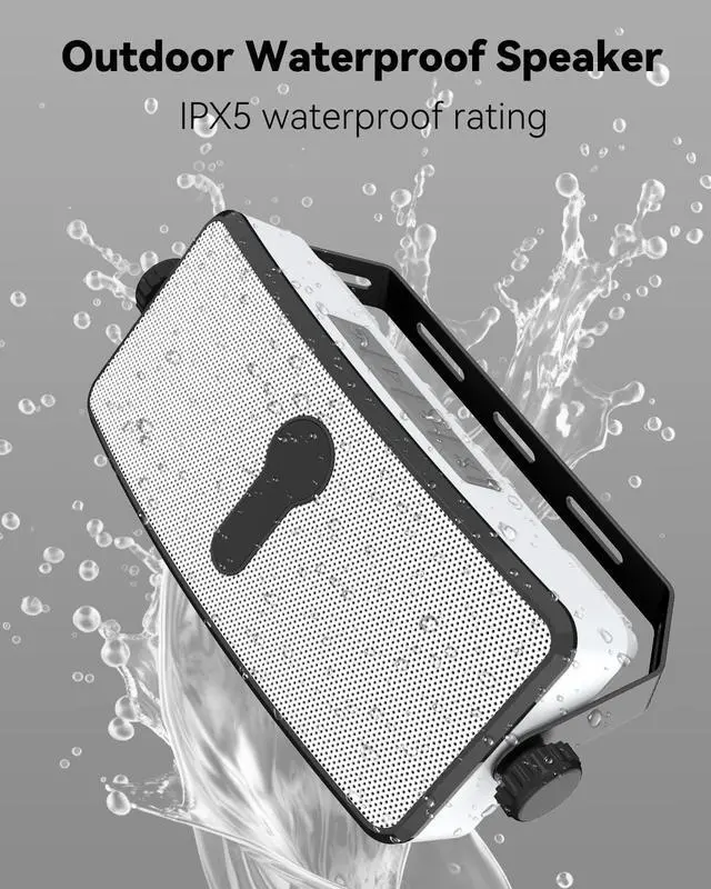 : Powered by a corded adapter (included). A single speaker delivers 20W RMS and up to 200W peak power, producing loud, clear sound with enhanced bass performance, making it ideal for outdoor entertainment. Built-in power cable is approx. 6.7 ft (2 meters) long for flexible placement.