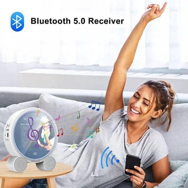 Newest CD Player with Bluetooth ReceiverWith wireless Bluetooth 5.1 Connectivity,the cd player bluetooth has fast Receiving speed, easy to operation and connect Bluetooth devices. it can receive the Bluetooth signal from your Bluetooth devices like such as mobile phones/iPad/computers/MP3/MP4 etc. to play your favorite music.(Tips: This CD player is only with a Bluetooth receiver function,without Bluetooth transmitter function)