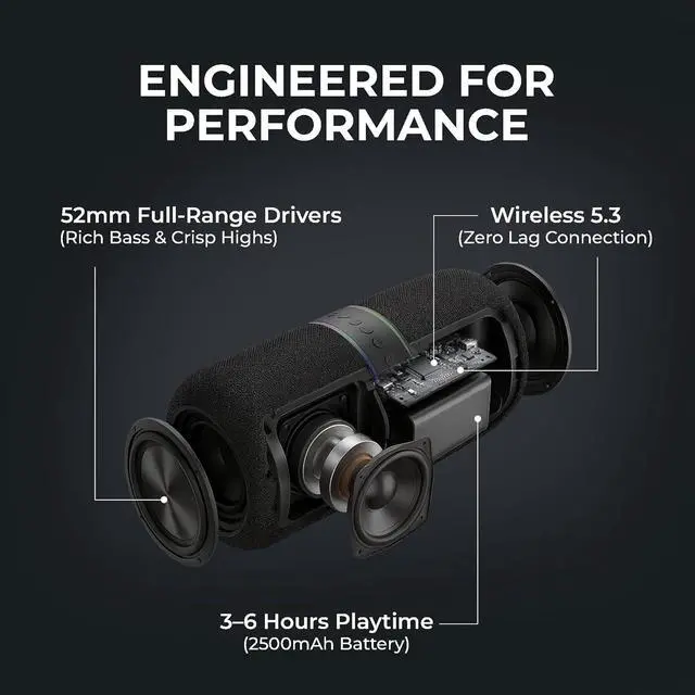True Left-Right Stereo Separation: Unlike standard mono devices, this detachable system physically splits into two distinct units to create a wide, cinematic soundstage. The large 52mm full-range drivers deliver rich, distortion-free audio that satisfies your need for crisp vocals and deep bass, instantly transforming how you experience music and movies.